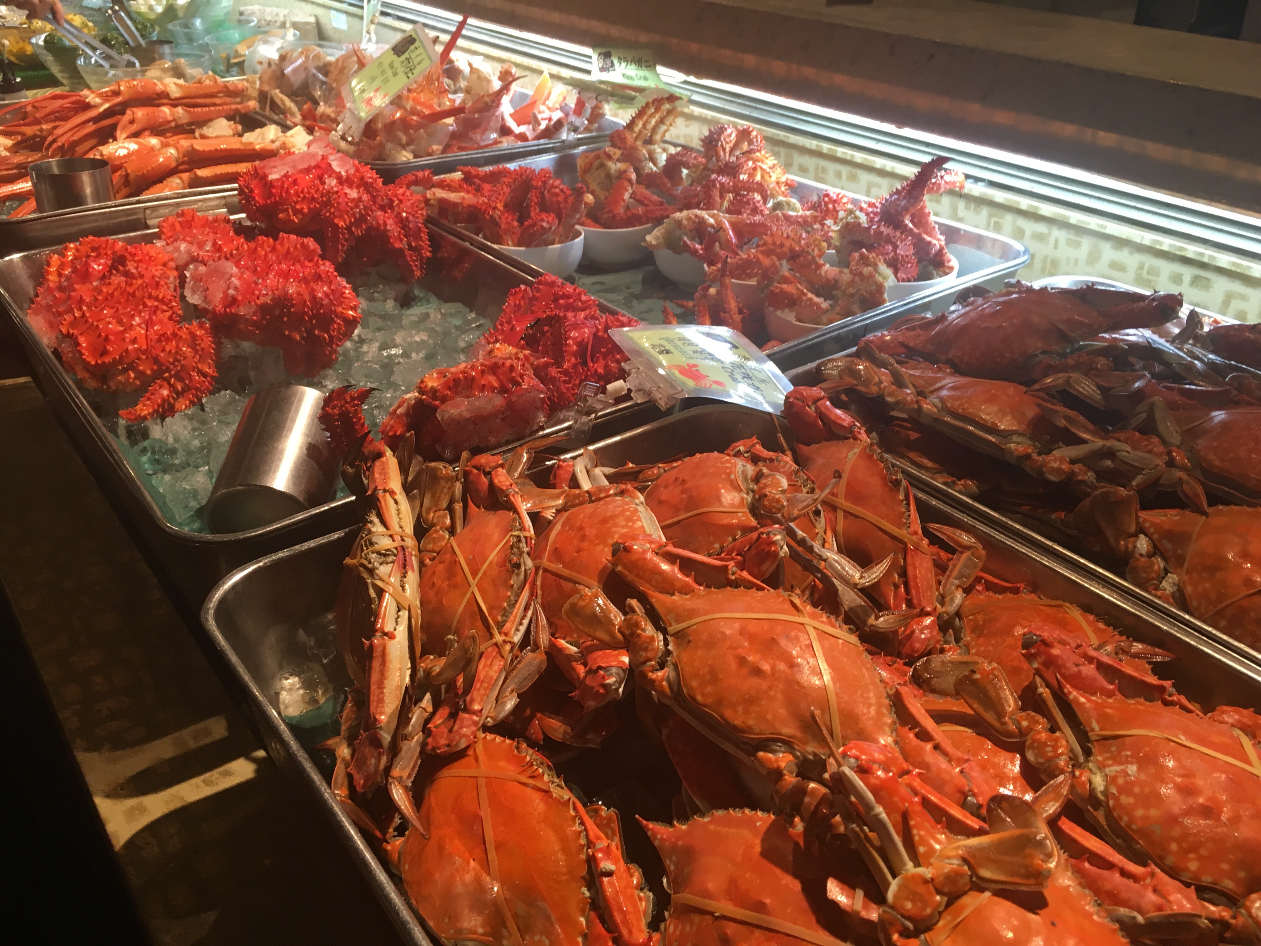 We call crab “Kani” in Japanese. You can see many carbs at fish markets or restaurants. It’s expensive but very tasty.