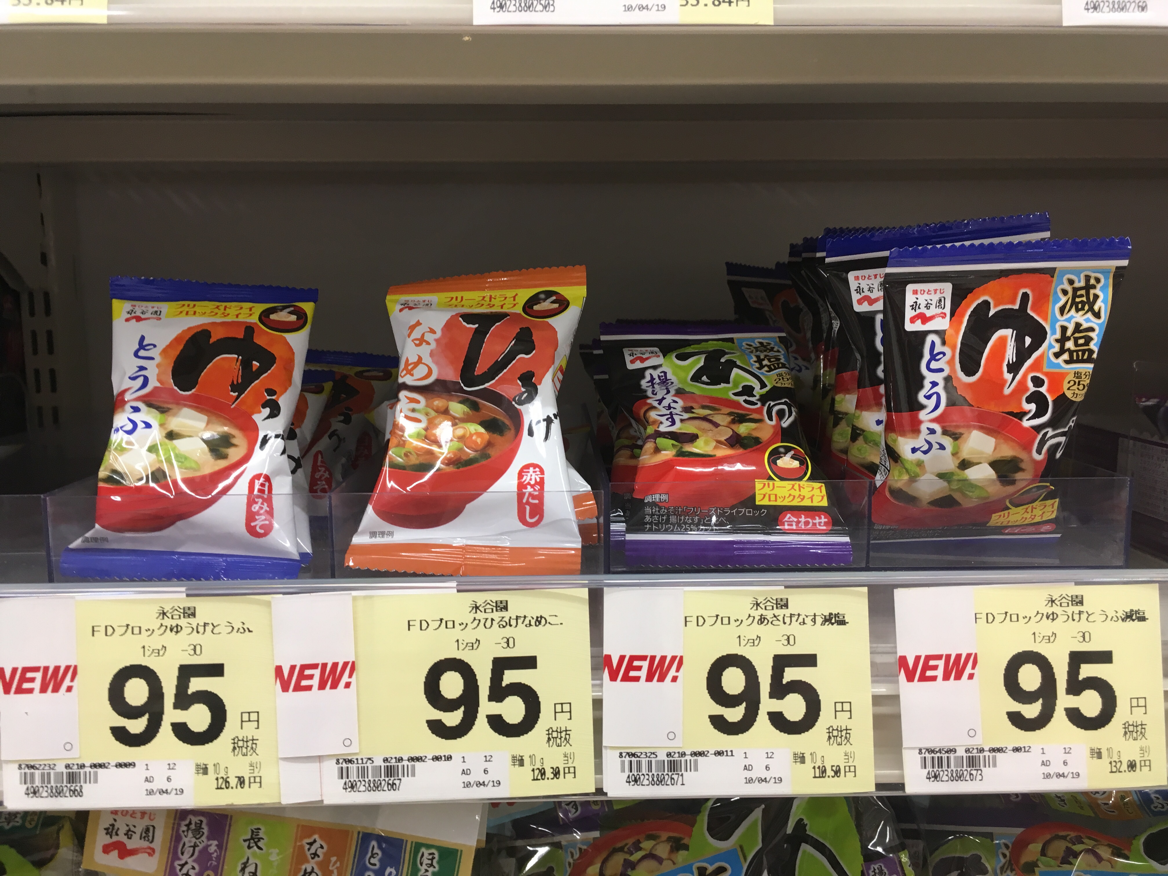 You can make Miso soup very easily and quickly. Some Miso soup packs are very cheap(less then 100 yen). There is also Miso pack, but this is heavy to carry.