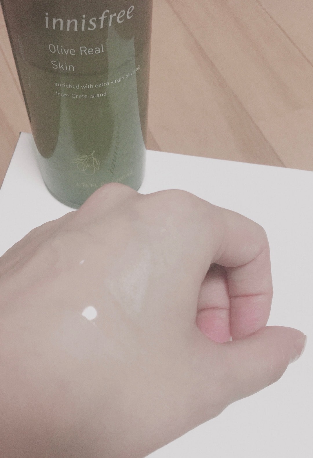 オリーブリアルローションも、粘性がありしっかりと肌をカバーするような質感です。スキンに加えてローションを塗るとさらに肌がもっちりとする感覚があります。