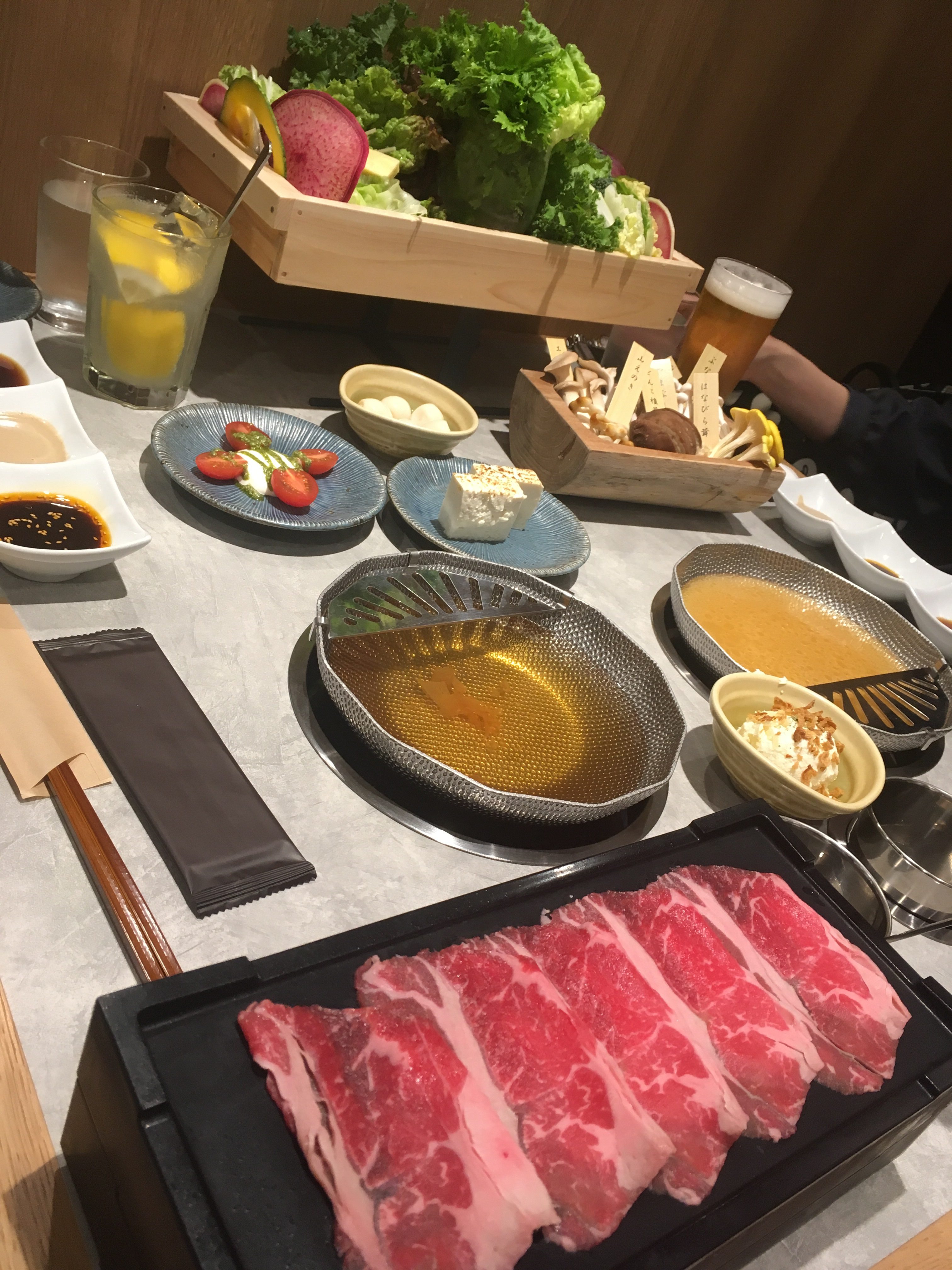 This is a Shabu-shabu restaurant. You can use your own hot pot and eat meat, vegetables and mushrooms as much as you want. You can choose some all-you-can-eat courses with your favorite broth and sauce, and also all-you-can-drink courses. Desert is also tasty and lovely.