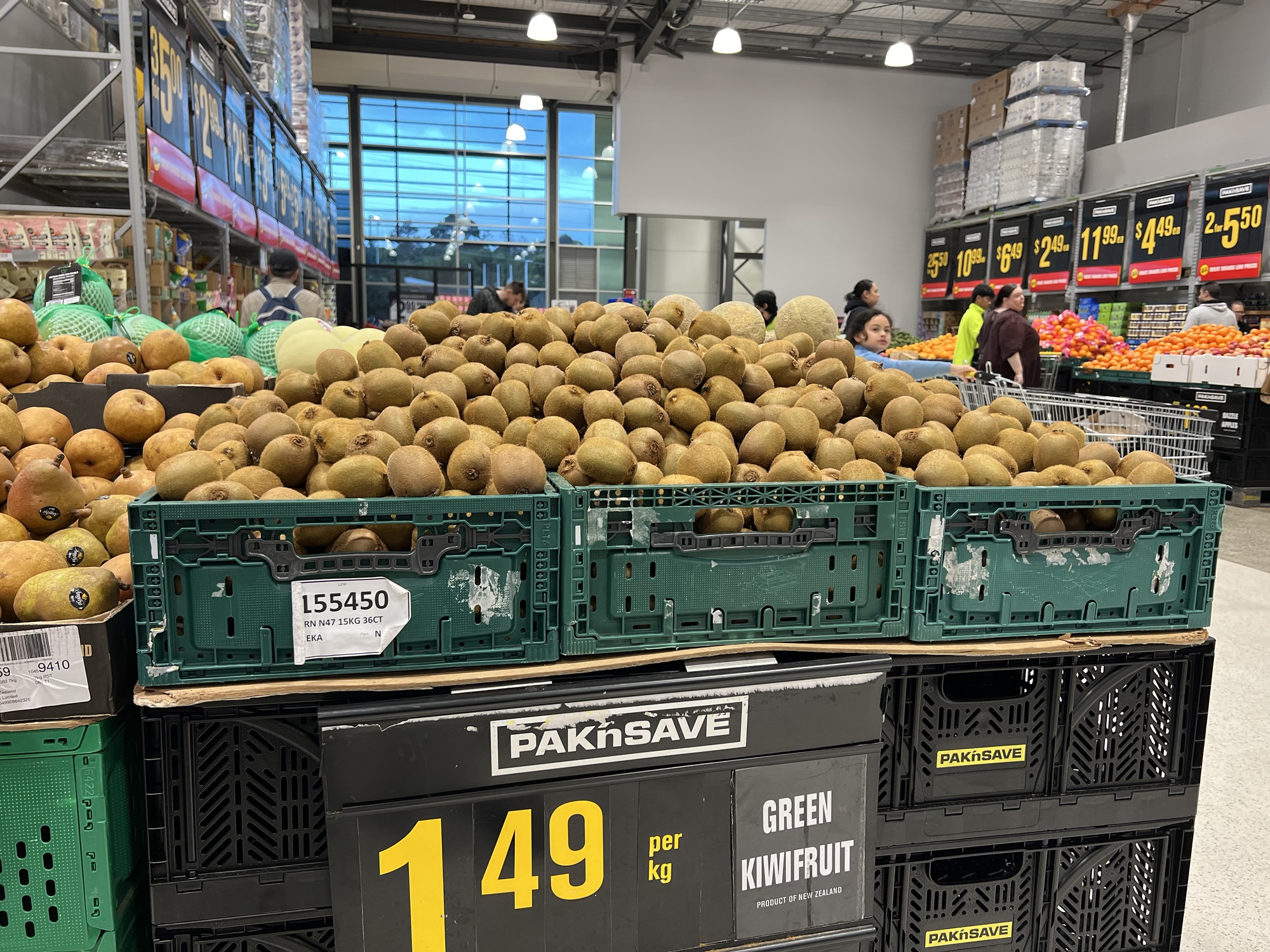街中にあるWoolworths(Countdown)やNew Worldは同じくらいの価格帯ですが、PAK’n SAVEというスーパーは大型で安いので、休みの日にPAK’n SAVEまで行って買い溜めしています。