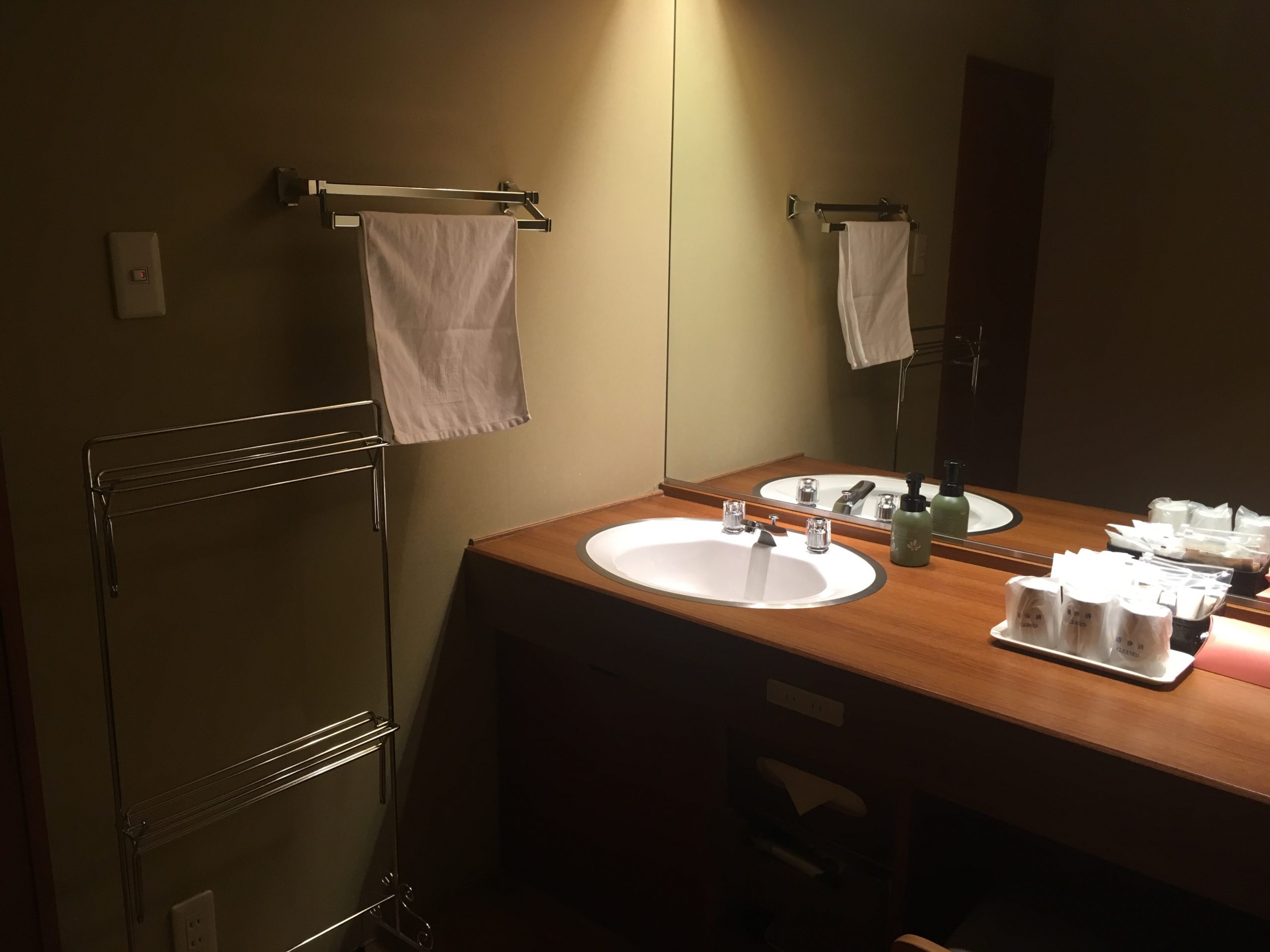 I stayed at Japanese and Western room for three people as you can see below. The price was around ¥20,000 per person. Big room, large bed, large wash basin, and toilet. There are puddings and chocolates on the table♡