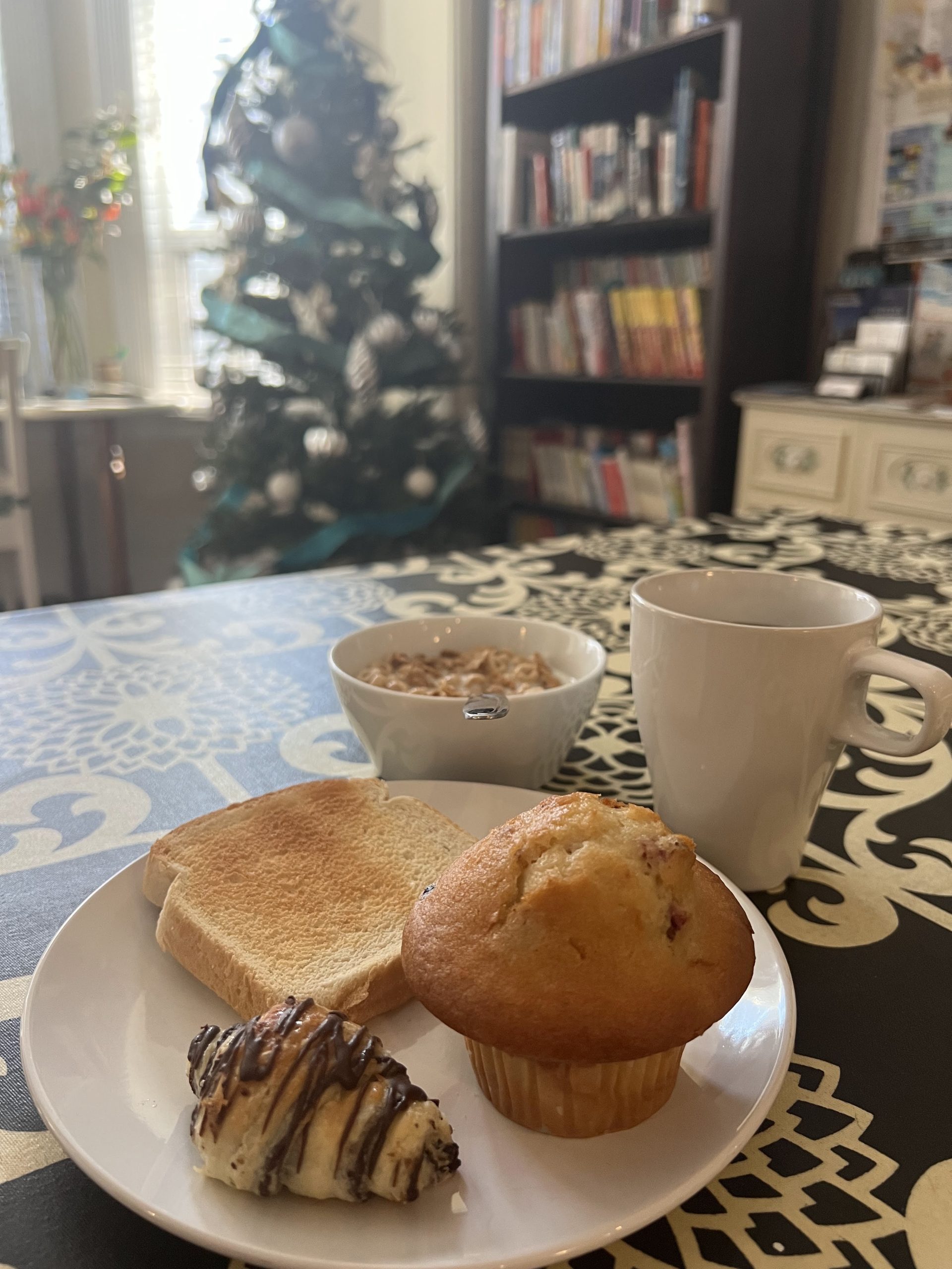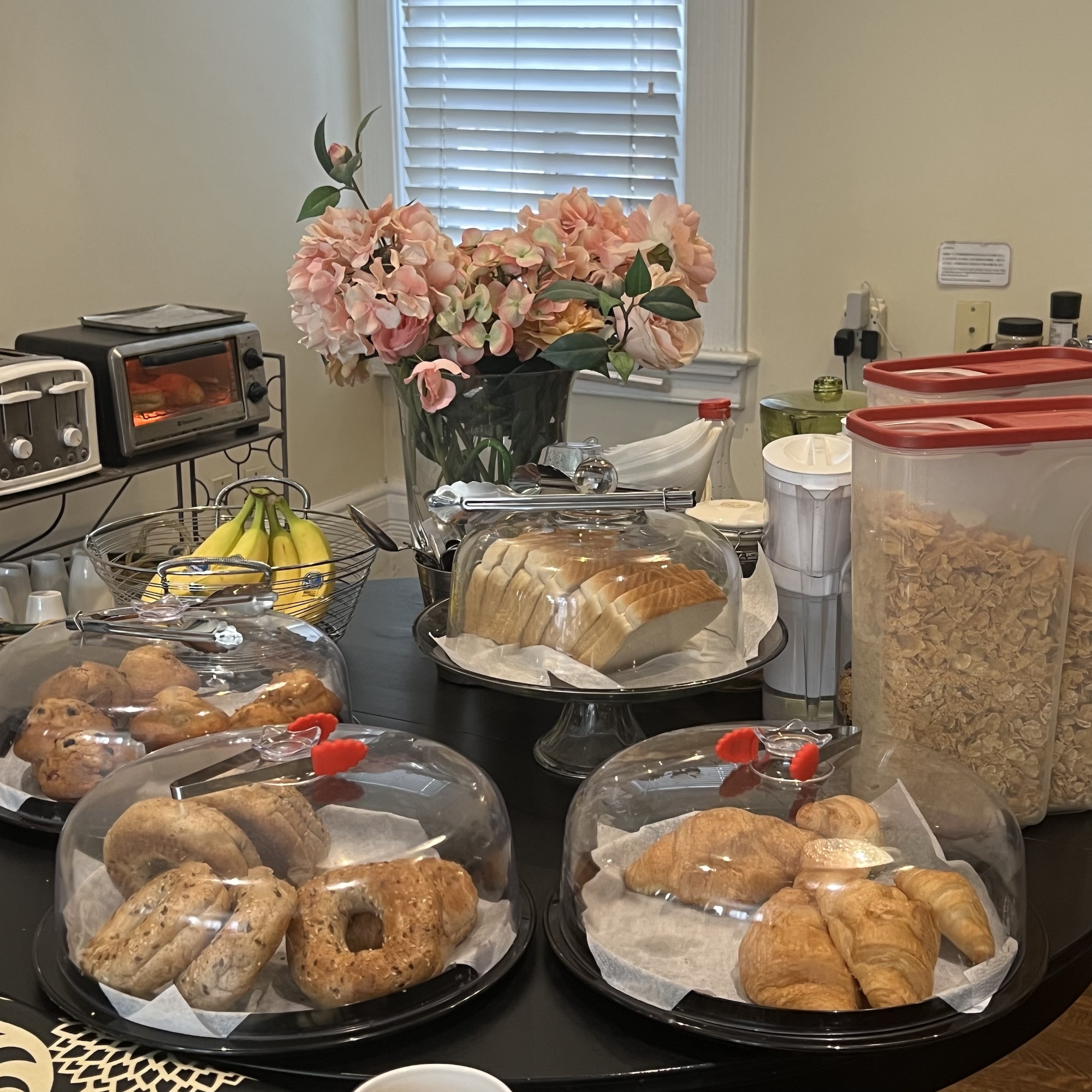 無料の朝食もついていて、パン、ヨーグルト、バナナ、シリアル、コーヒーなど早朝から11時頃まで自由に食べることができます。